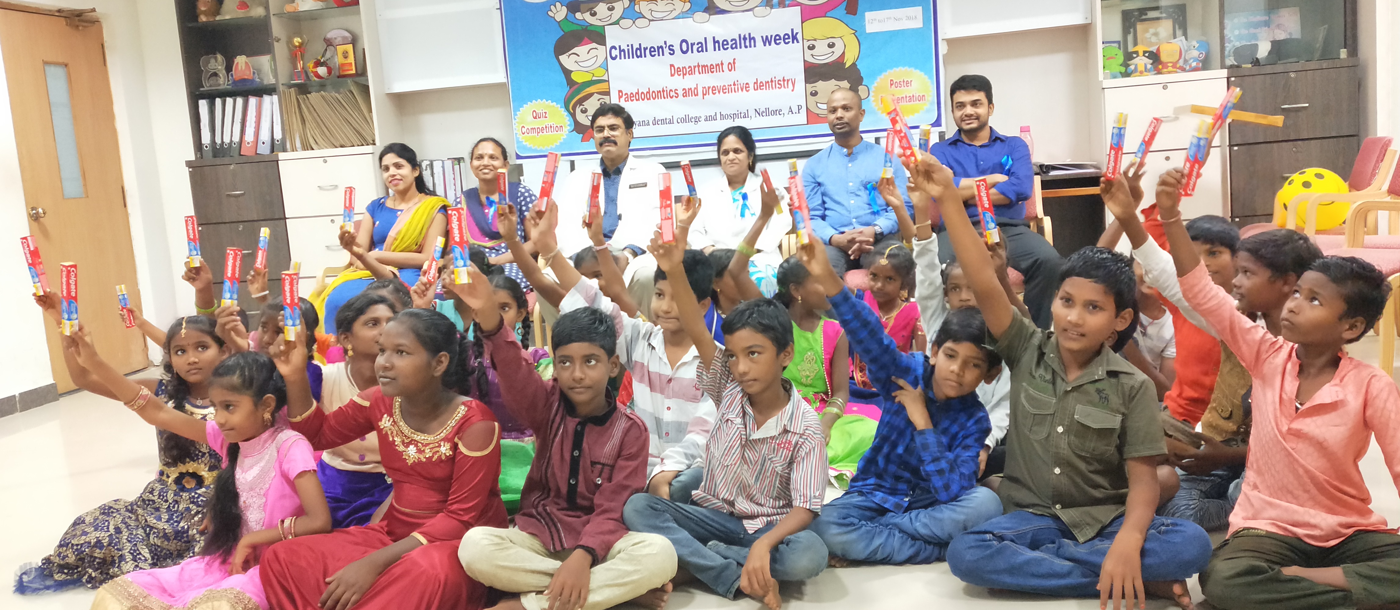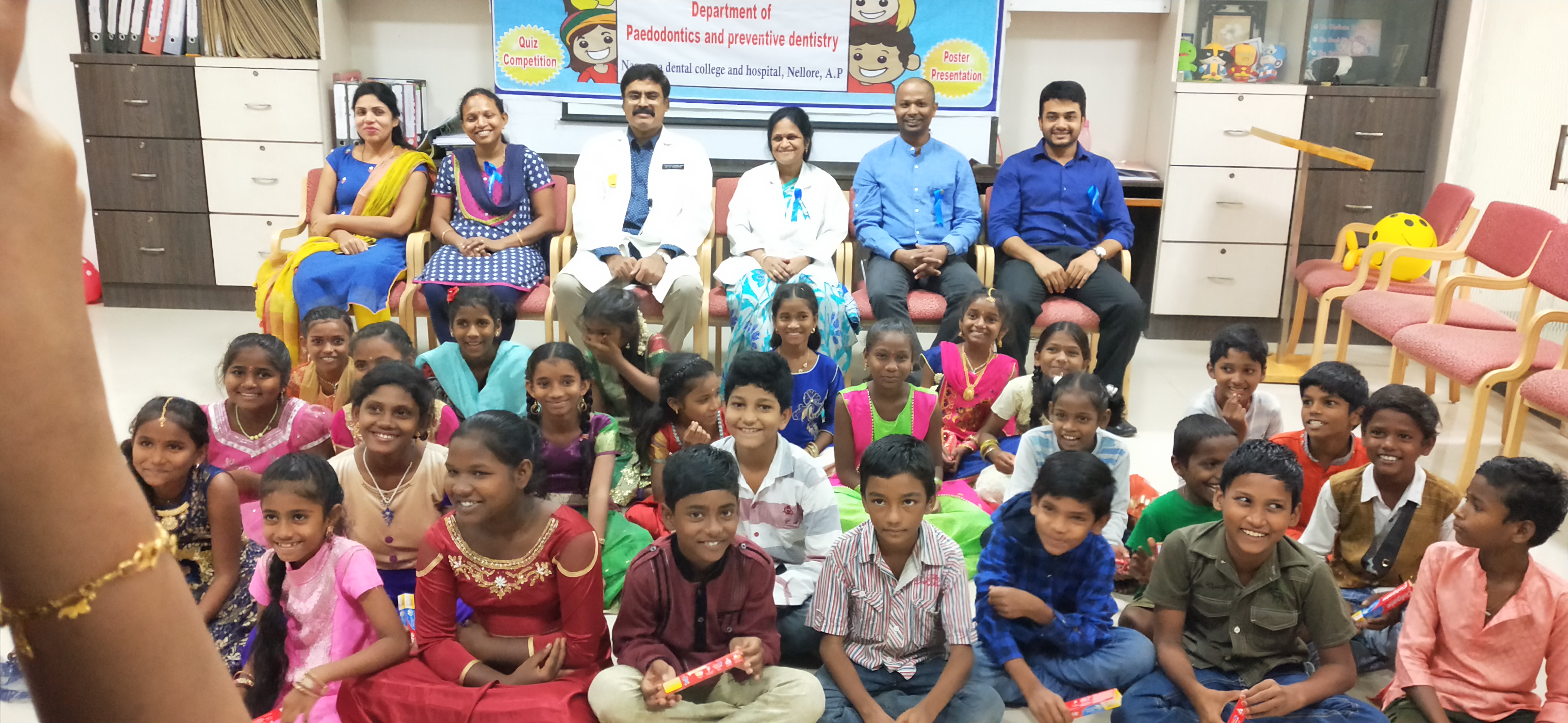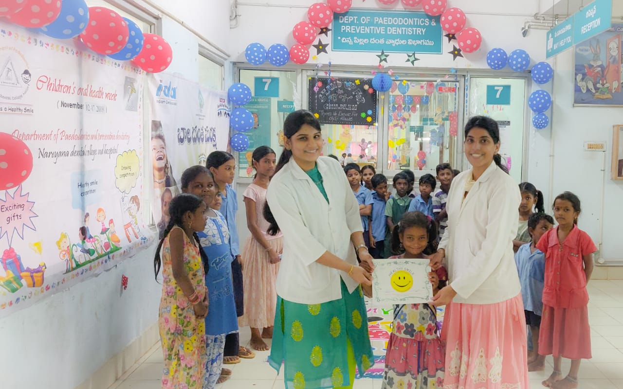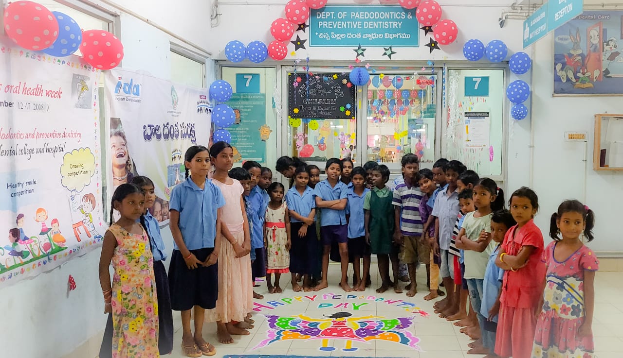 The department of Paedodontics and preventive dentistry conducted children’s oral health week as a part of social awareness programme about dental problems and the treatment. The theme for this year’s programme is about prevention of child abuse and neglect. We have conducted many awareness programmes regarding prevention of child abuse and neglect in various schools and organizations. In the department we have piloted puzzle games, musical chairs, ball games, ramp walk and distributed certificates to children for healthy smile and good behaviour. We also presented oral hygiene kits to underprivileged children to promote oral hygiene. To encourage undergraduate students we have held quiz and theme competitions and distributed prizes.