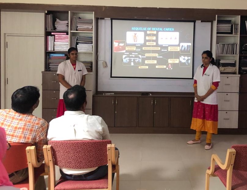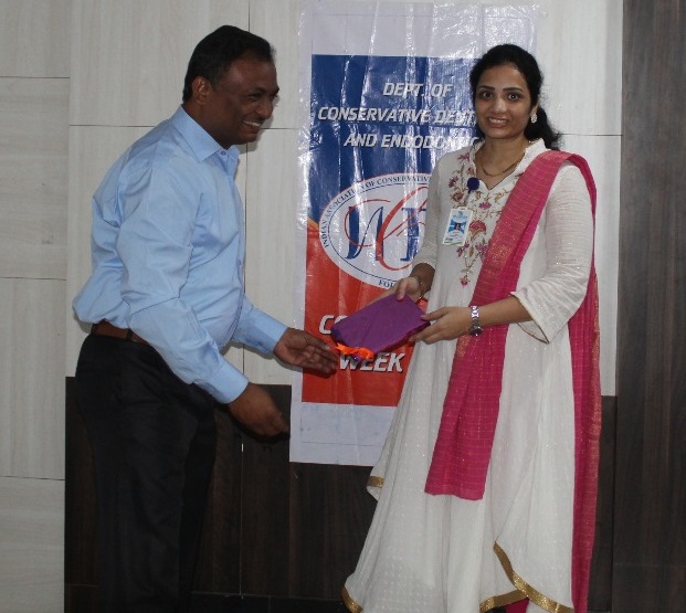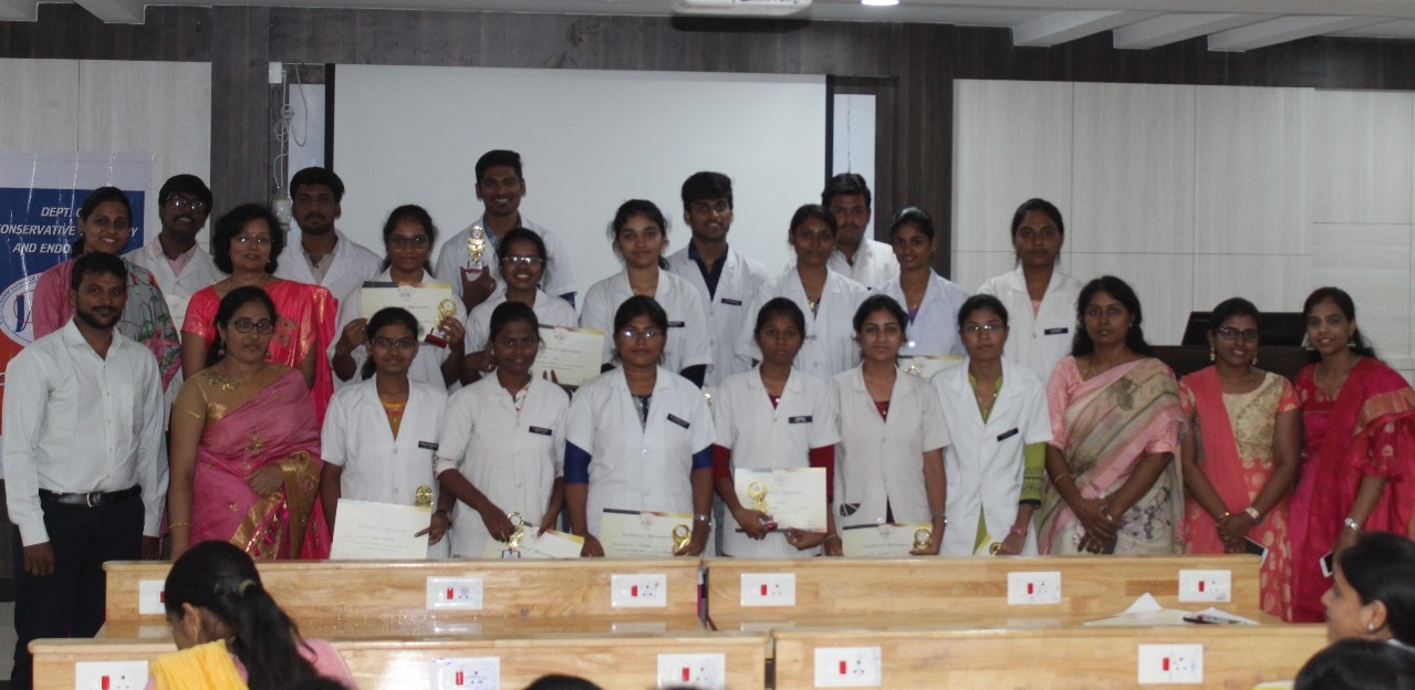 Academic: 1. Quiz for UGs & PGs 2. E Poster for UGs 3. Cartoon Art for Ugs 4. Veneer – wax mock up for posterior Non Academic- 1. Short movie making for UGs ( subject related to specialty) 2. Talent show 3. Best Smile among the staff – Survey conducted among the UGs The students participated with great enthusiasm and presented very innovative ideas in posters and cartoon art. A valedictory function was held to thank all the staff who helped in judging the sessions and also to compliment the prize winners by giving certificates & prizes. The program was compeered by Dr Swapna and Dr Niharika of Dept of Conservative Dentistry and Endodontics. All the staff, including Dean, Co ordinator, HODs and UG students witnessed the valedictory function. A final vote of thanks was delivered by Dr. Lavanya A, HOD.