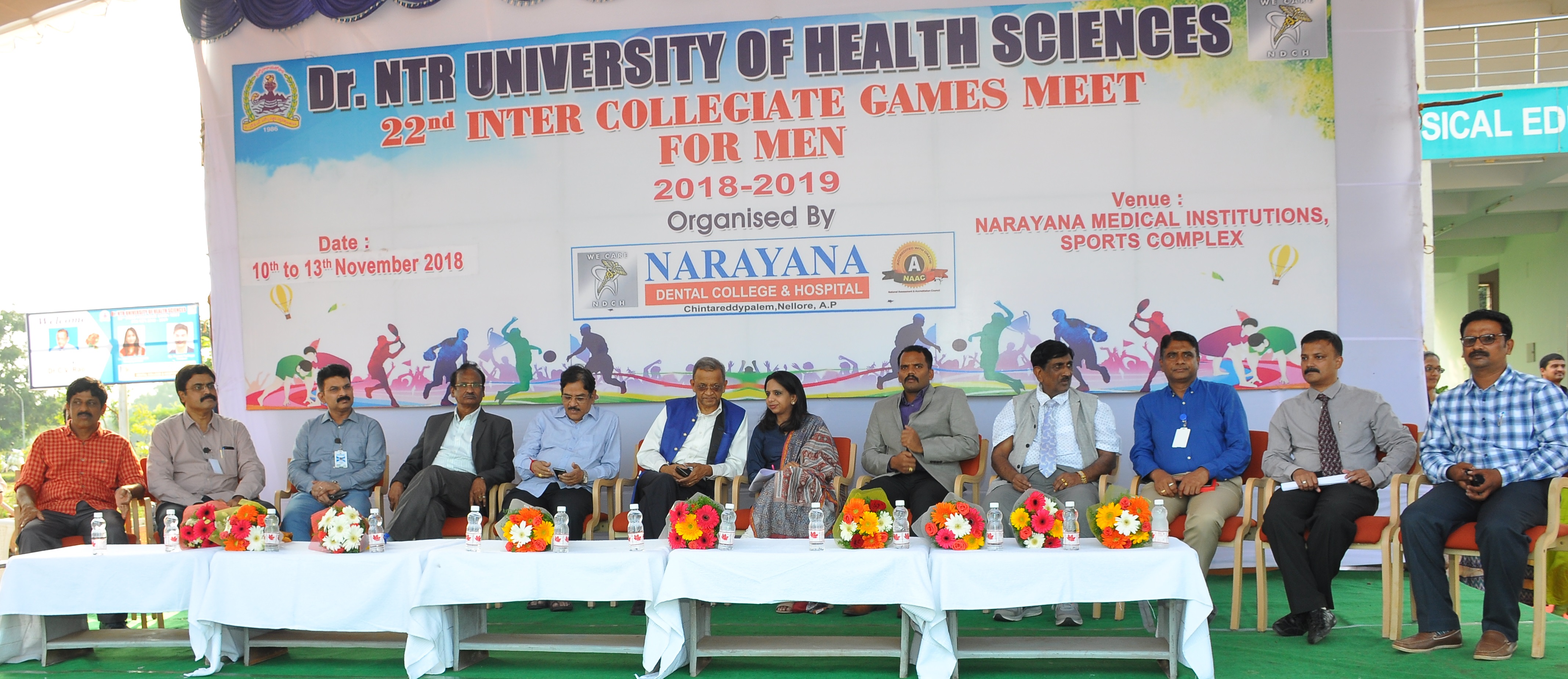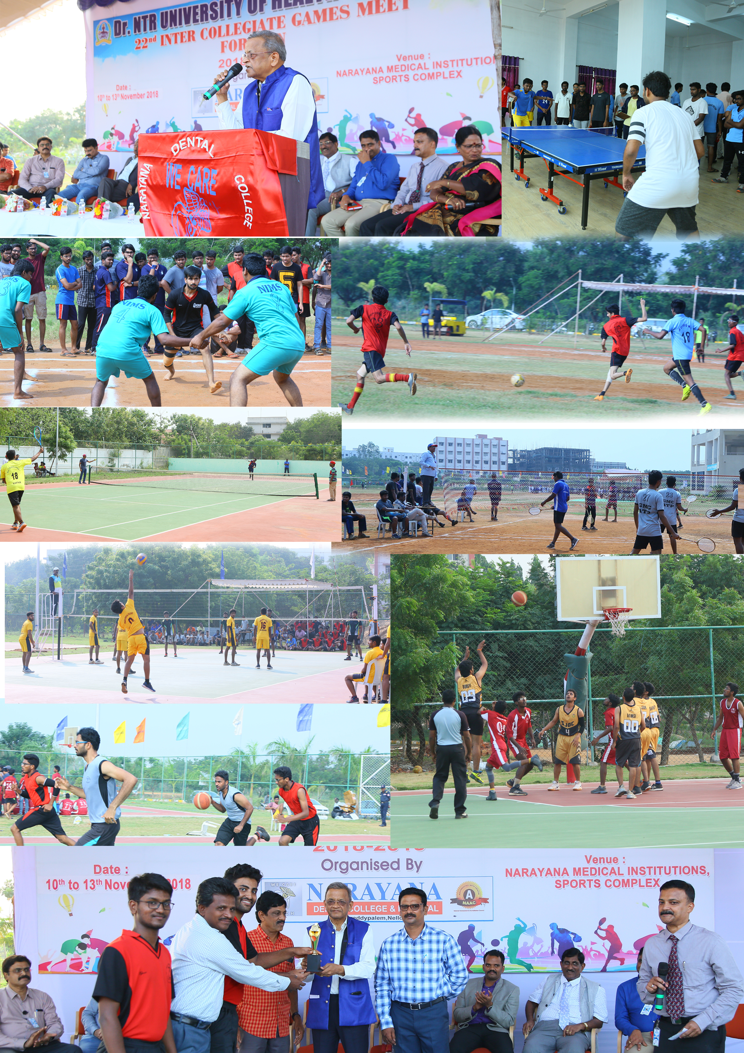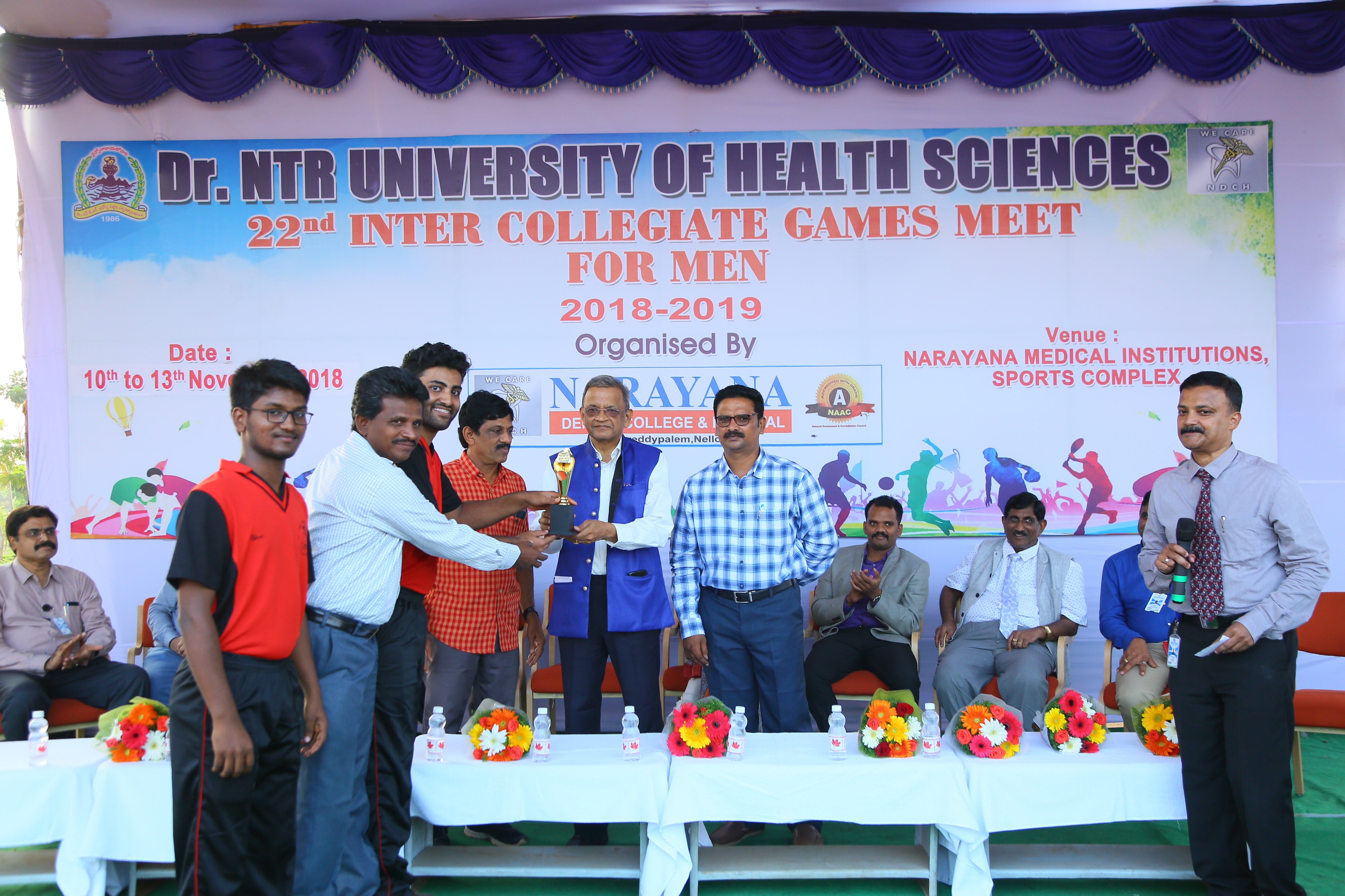 Dr. NTR University of Health Sciences, 22nd Inter Collegiate Games Meet for Men 2018-19 has conducted by Narayan Dental College, Nellore from 10-13 nov 2018 under the guidance of Dr. NTR Medical University. Dr. C.V. Rao, Vice Chancellor of Dr. NTR University attend as Chief Guest.