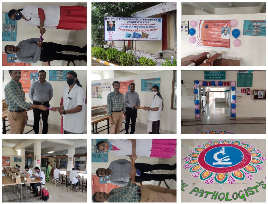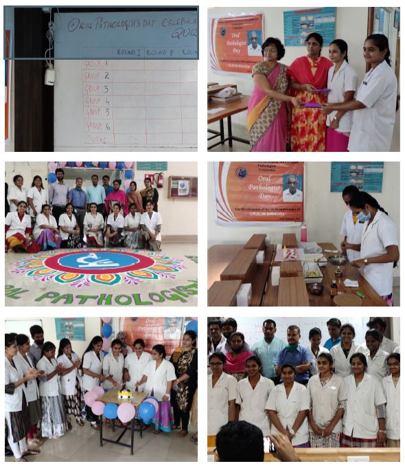 Department of Oral & Maxillofacial Pathology & Oral Microbiology conducted “NATIONAL ORAL PATHOLOGIST DAY” on 25th Feb 2021, along with “ORAL PATHOLOGY DEPT CELEBRATIONS”, which extended from 23rd to 25thFeb 2021. Many competitions were held like `Best out of waste` for IBDS, `soap or vegetable carving` for II & III BDS students. IV BDS students & Interns participated in Quiz competition. The competitions were held in both the DADH practical hall & Smart class room within the college. On 25th Feb, to commemorate Dr. H. M. Dholakia Sir’s birthday, a cake cutting event was organized in the elite presence of our principal Dr.Ajay Reginald. Prizes were distributed to the winning batches / individuals on the day of respective competitions by the invited staff from other departments. In addition prizes were given to the students who secured highest percentage of attendance in DA & DH (I BDS) and Oral pathology (III BDS) subjects.