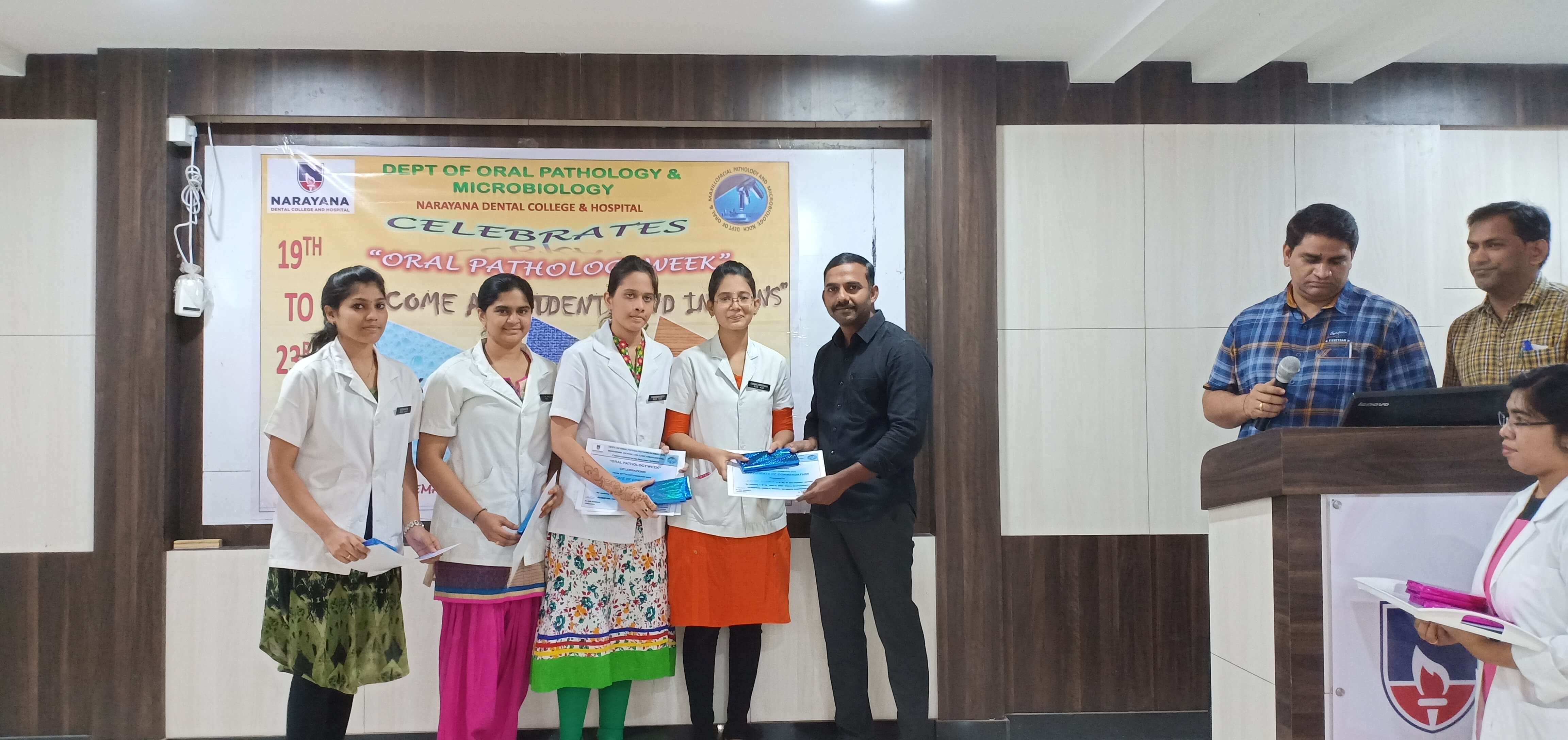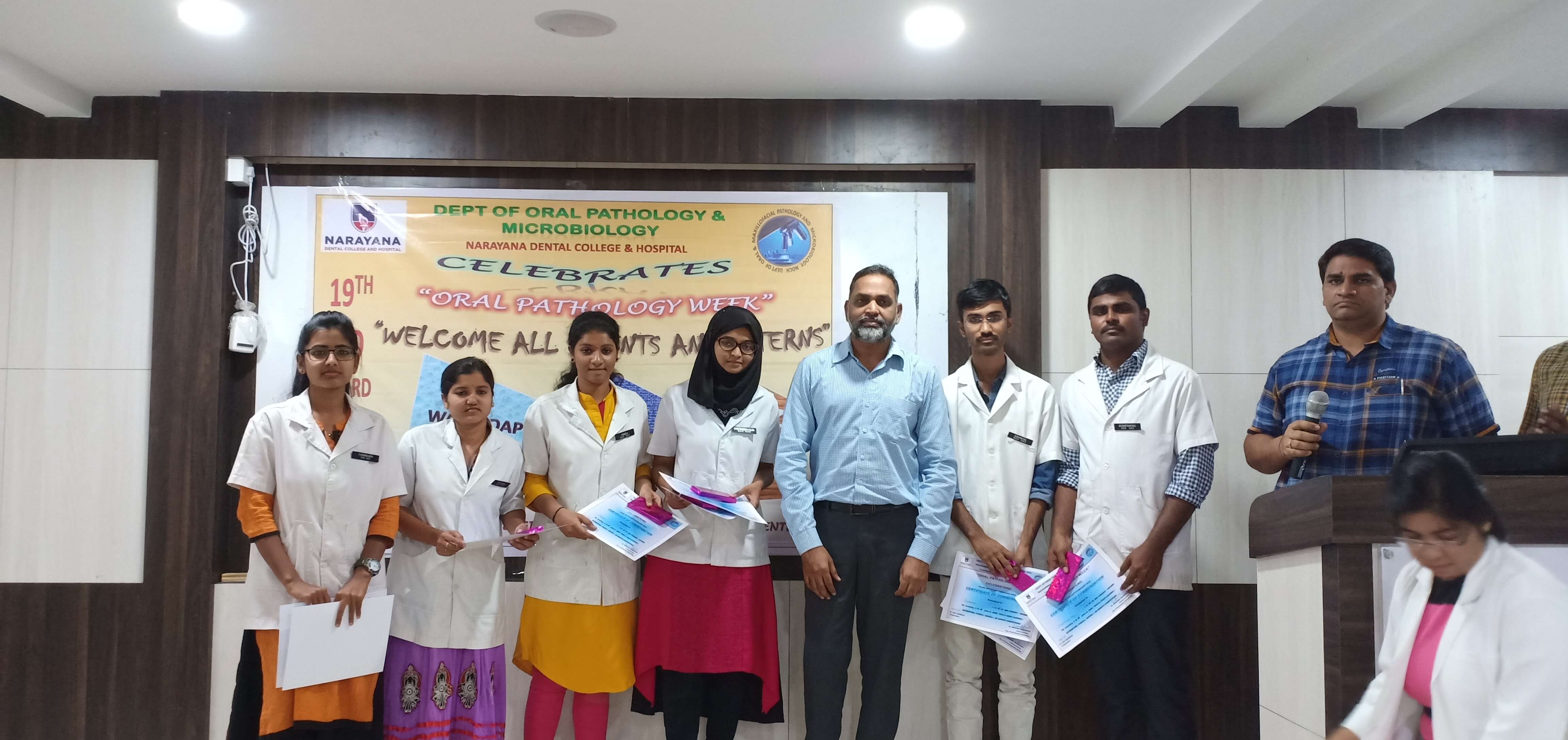 “ORAL PATHOLOGY WEEK”, a student oriented program, comprising of a series of competitions, was held by the Department of Oral & Maxillofacial Pathology & Oral Microbiology, NDCH, from 19th to 23rd of February 2019. There were Wax / Soap Carving & Puzzle competitions for I BDS students. II BDS students participated in Extempore. III BDS students had Puzzle and 2D / 3D model making competitions. Final years & Interns participated in Quiz competition. It was held in the both the DADH Lab & smart class room within the college premises. A valedictory function was held on the last day and over 100 prizes & certificates were distributed to the winning batches / individuals. In addition certificates & mementos were given to the students who secured highest attendance in I year DA & DH and III year Oral pathology classes.