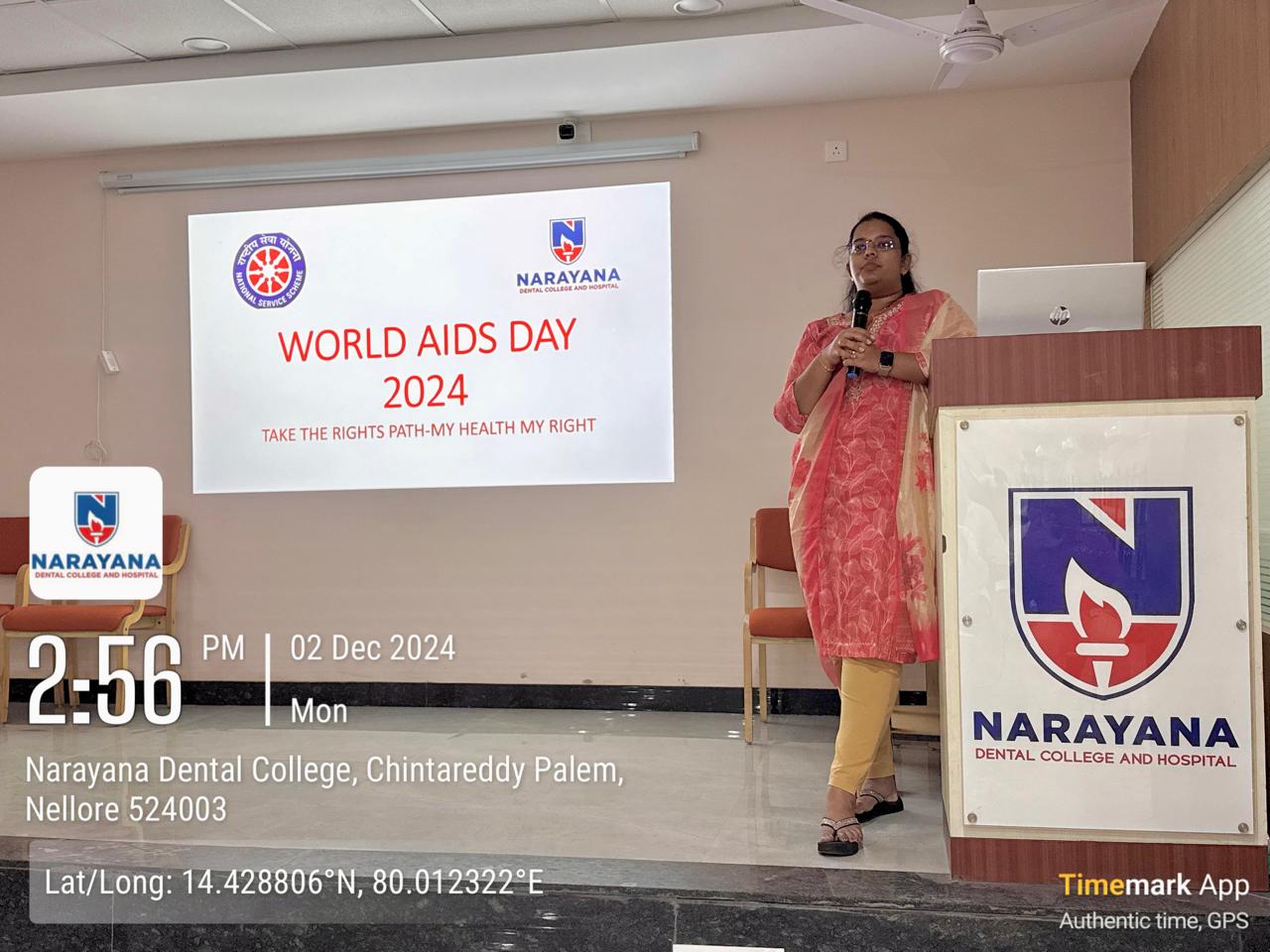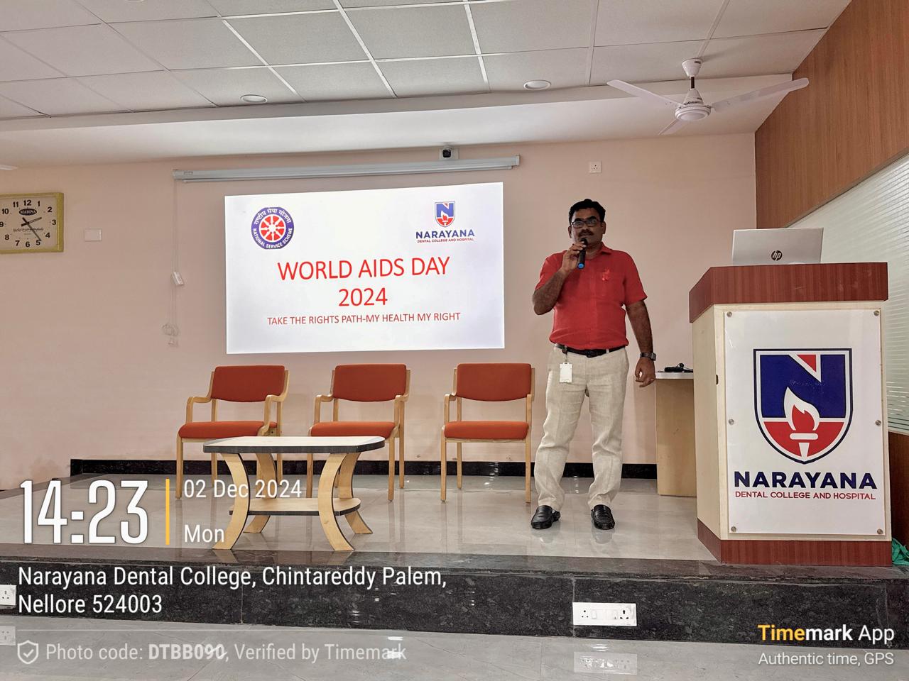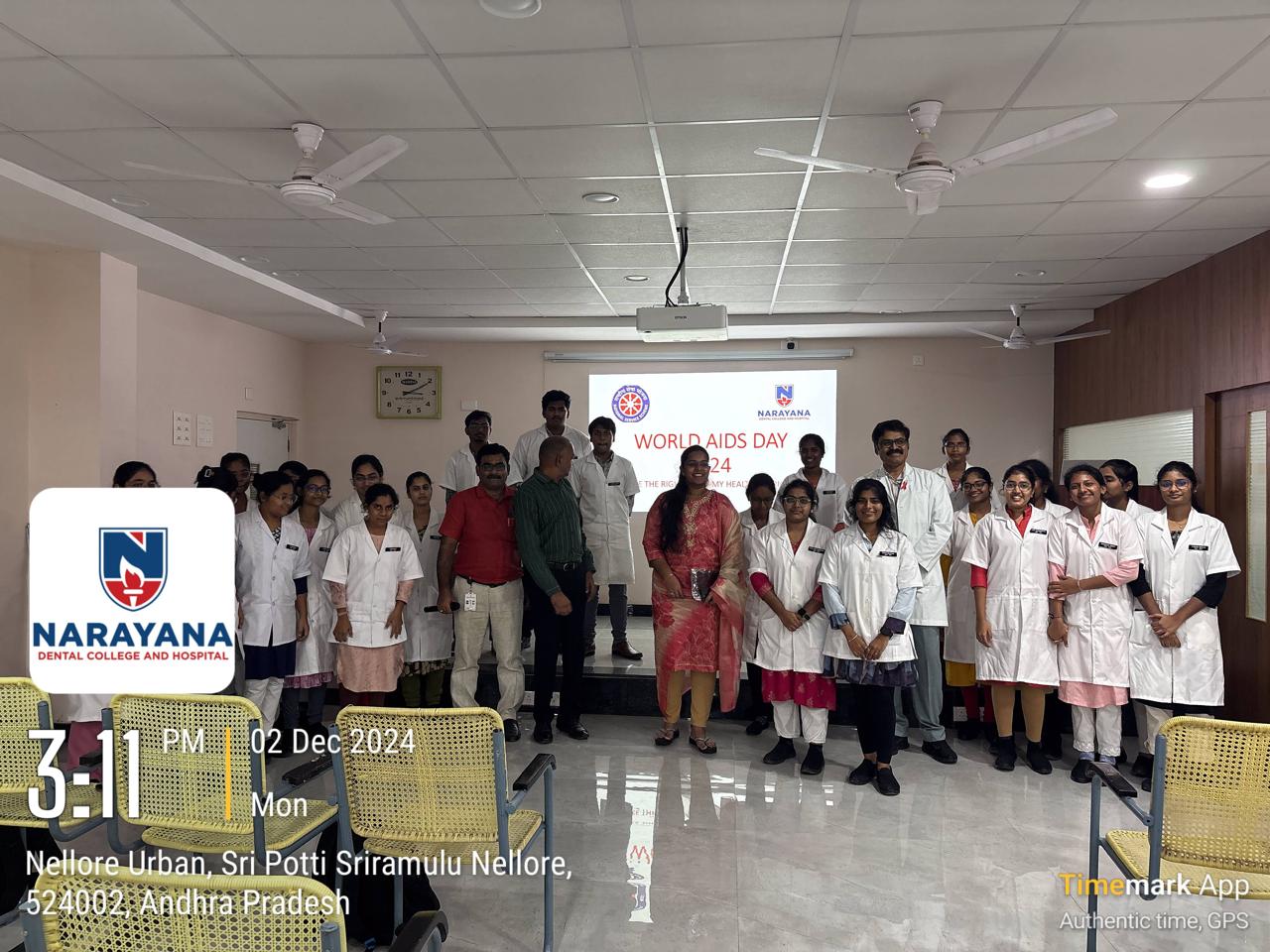 World AIDS day is observed on December 1st every year. This day brings together people from around the world to raise awareness about HIV/ AIDS and demonstrate international solidarity in the face of the pandemic. This year’s theme (2024) is TAKE THE RIGHTS PATH- MY HEALTH MY RIGHT. As a part of World's AIDS day Department of Public Health Dentistry and NSS unit of Narayana Dental College conducted different programme including Red Ribbon Campaign, Pamphlet distribution, Awareness class on HIV. The Red Ribbon Campaign was conducted at Narayana Dental college and Hospital. Red Ribbons were distributed among all the staffs and interns and PG students of all departments. Pamphlet containing awareness, cause and transmission of HIV was distributed among the pa....